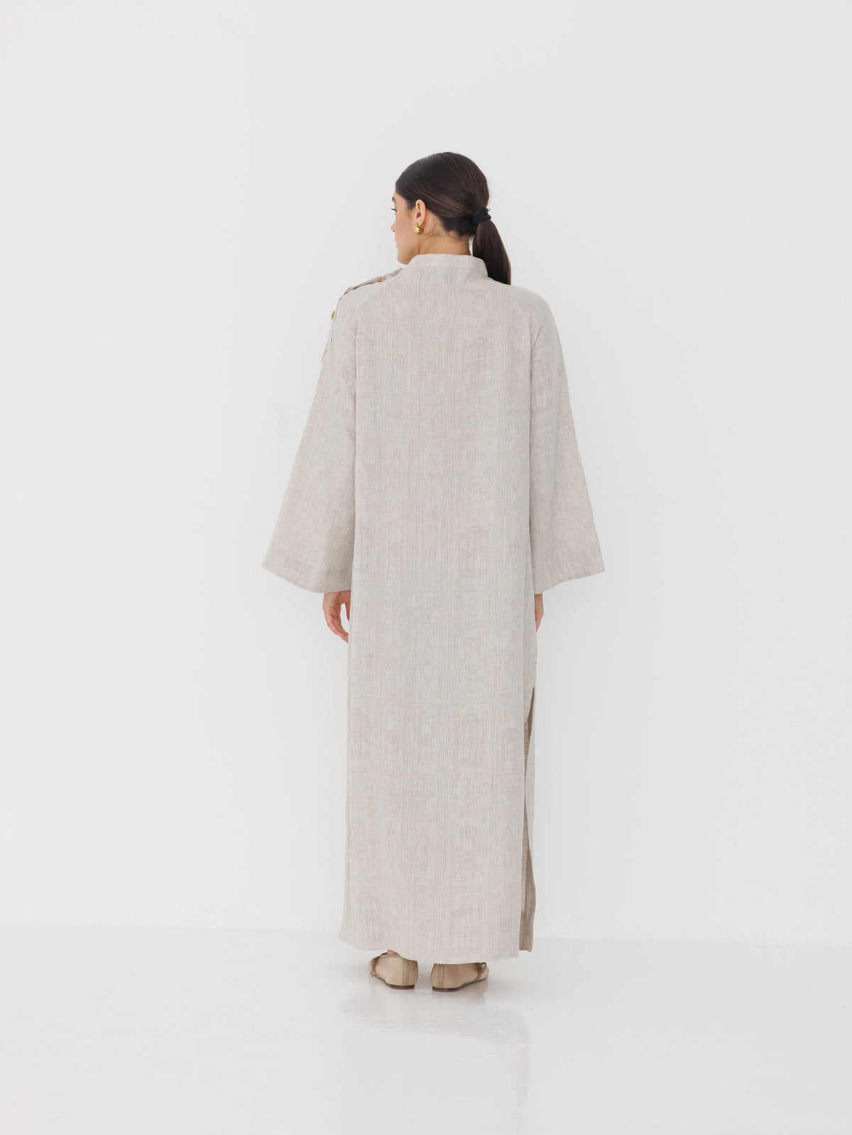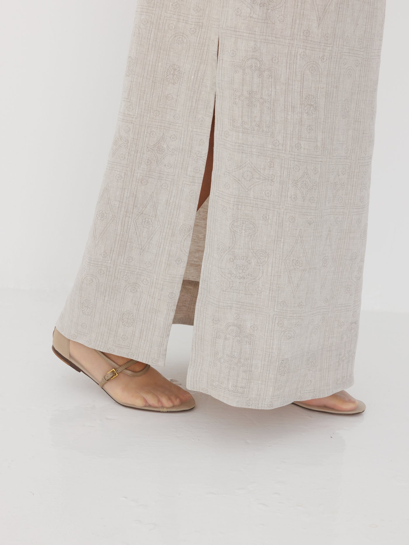 Crafted from 100% organic linen, Awaan is designed with ease and intention. The breathable fabric features a subtle door-outline print, inspired by old doors and the stories they carry.